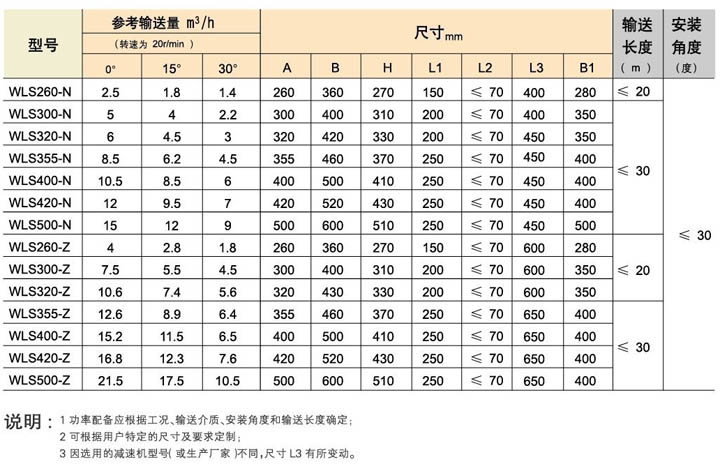 WLS型無軸螺旋輸送機(jī)主要適用于污水處理廠輸送格柵柵渣、污泥脫水機(jī)的泥餅等。